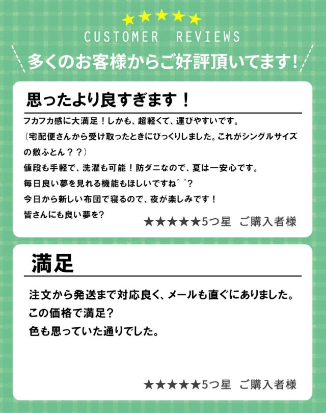 - 厚みが思ったよりなかったですが問題なく眠れました! 配送も早く助かりました!
