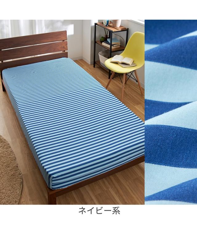 シーツ ボーダー柄 マットレス 敷布団兼用 ネイビー系 ダブル ニッセン nissen