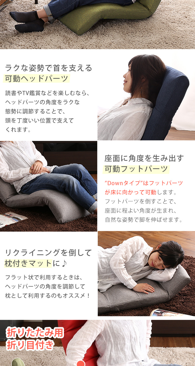 座椅子 リクライニングチェア 枕 フラット 低い 椅子 ローソファー レザー 1人掛け 折りたたみ 折り畳み カウチ フロア 一人掛け 1人用 一人用 一人暮らし コンパクト 読書 勉強 こたつ ハイバック 革 合皮 ゲーミング ゲーム 緑 ベージュ 赤 PVC ブラック 黒 ブラウン 青