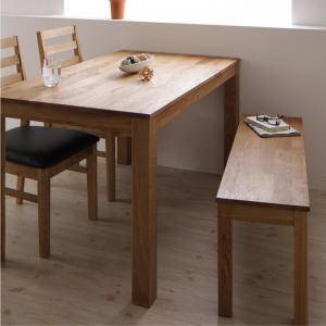 ダイニングテーブルセット 4人用 椅子 ベンチ おしゃれ 安い 北欧 食卓 4点 ( 机+チェア2+長椅子1 ) オーク レザー座 幅160 デザイナーズ クール スタイリッシュ ヘリンボーン風 ミッドセンチュリー ウォールナット 無垢