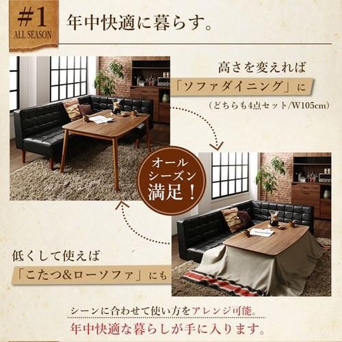 ダイニング こたつテーブル セット 4人用 コーナーソファー L字 l型 ベンチ 長椅子 ダイニングチェア おしゃれ 安い レザー 合皮 3点 食卓 右肘 105×75 長方形 高さ調節 高さ調整 継ぎ脚 継ぎ足 継足 継脚 2way 底上げ 脚長 高足 高い 座面低め ロータイプ ハイタイプ