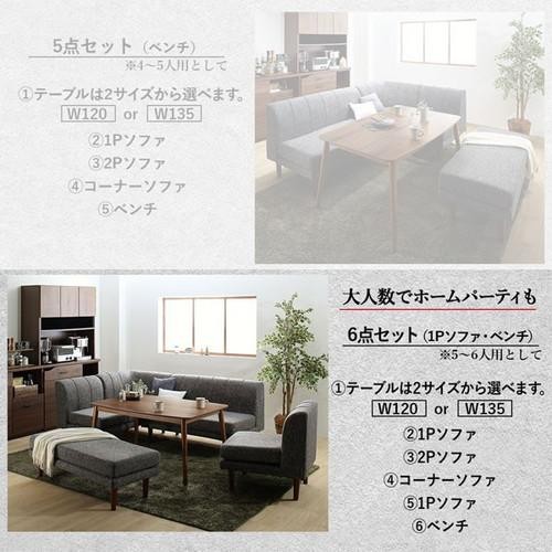 5点(机+2Pソファ1脚+1Pソファ2脚+コーナー1脚)幅135