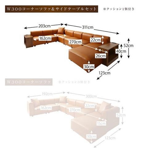 W300コーナーソファ&サイドテーブルセット: