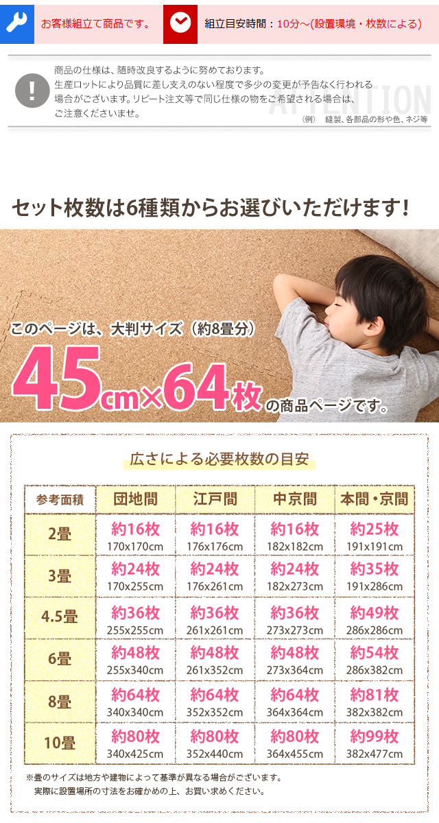 あす着 コルクマット 大判 ジョイントマット 厚手 極厚 分厚い 端 角 フチ付き 縁 クッションフロア 64枚 45cm 8mm 8畳 八畳 赤ちゃん ベビー 安全 保温 柔らかい 防音 子供部屋 ペット 滑り止め 老犬 キッズラグ あったか タイルカーペット プレイ パズル 低反発 切れる