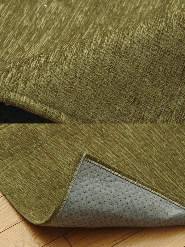 | 無地のシェニール織ラグです。毛足が短いためお掃除も簡単です。裏面にはフローリングの上でもご使用できるよう、滑りにくい加工を施しております。ホットカーペットカバーとしてもご使用できます。 |