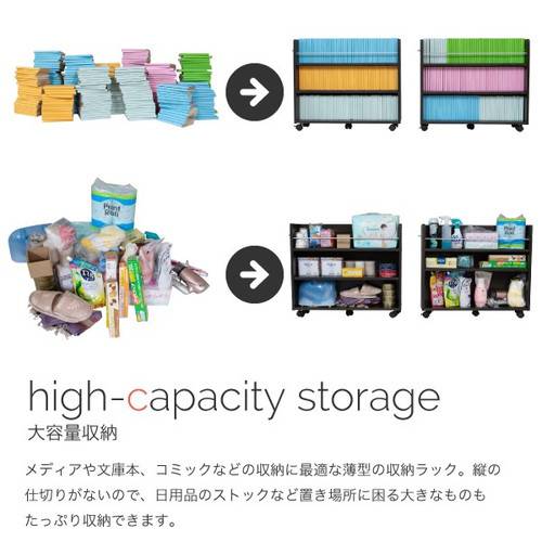 あす着 本棚 収納 隙間 キャスター デスク ワゴン 押し入れ 押入れ マガジンラック スリム 薄型 可動棚 クローゼット ロータイプ 低い コミック 漫画 文庫本 cd dvd 子供 絵本 コンパクト ミニ 移動式 奥行20 幅80 高さ65 ブラウン ナチュラル ホワイト 白 3段 2個 200冊