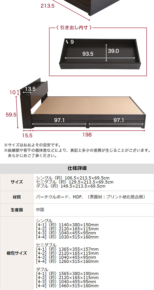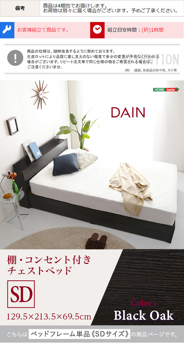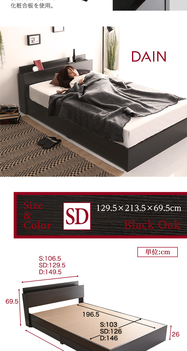 ベッド セミダブル ベット ベッドフレーム おしゃれ 安い 北欧 一人暮らし SD チェストベッド ミドル ベッド下収納 引き出し付き 大容量 宮付き ヘッドボード 枕元 棚 コンセント 敷布団可 マットレス不要