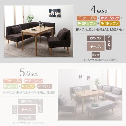 ダイニングテーブルセット 5人用 コーナーソファー L字 l型 ファミレス風 椅子 おしゃれ 安い 北欧 食卓 カウチ 4点 ( 机+2Pソファ1+右肘ソファ1+1Pソファ1 ) 幅115 デザイナーズ クール スタイリッシュ ミッドセンチュリー 高さ67 ロータイプ 低め パイン 木製