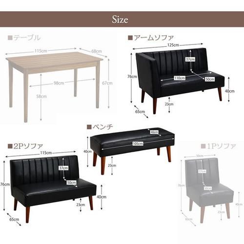 4点(机+2Pソファ1脚+肘ソファ1脚+ベンチ1脚)右肘115