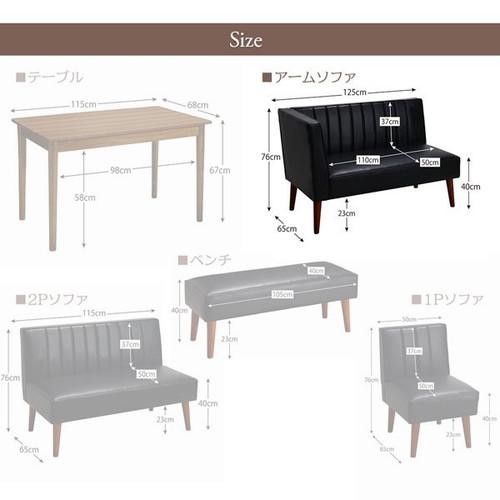 4点(机+2Pソファ1脚+肘ソファ1脚+ベンチ1脚)右肘115