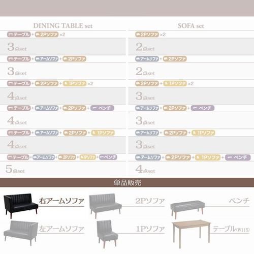 4点(机+2Pソファ1+肘ソファ1+1Pソファ1)右肘115