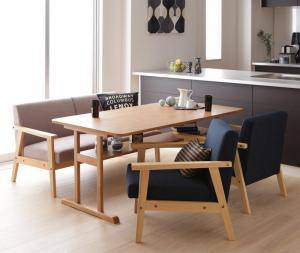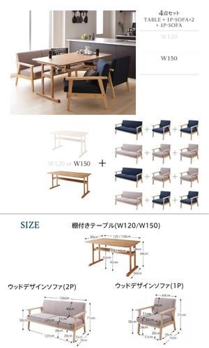 ダイニングテーブルセット 4人用 椅子 ソファー おしゃれ 安い 北欧 食卓 4点 ( 机+2Pソファ1+1Pソファ2 ) 幅150 デザイナーズ クール スタイリッシュ ミッドセンチュリー 2本脚 和モダン ファミレス風 高さ65 ロータイプ 低め オーク 木製 棚