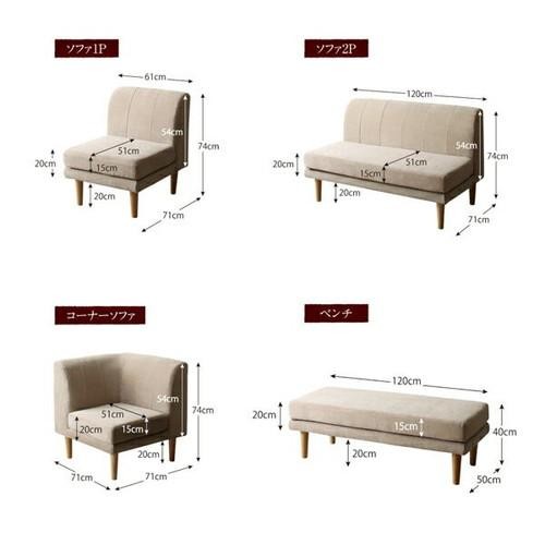 食卓ソファ3点1P+2P+コーナー