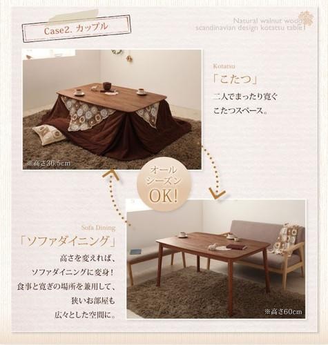 4段階で高さが変えられる 天然木ウォールナット材高さ調整こたつテーブル