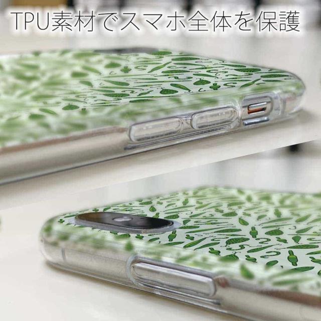 | ケースの素材について | 側面はゴムのように柔らかいTPU素材で、スマホ本体を守ります。万が一の落下でもケースが割れることがなく、耐久性の高いケースとなります。クリア(透明)のTPUケースにプリントしていますので、スマホ本体のカラーを活かしながらデザインケースが楽しめます。 |