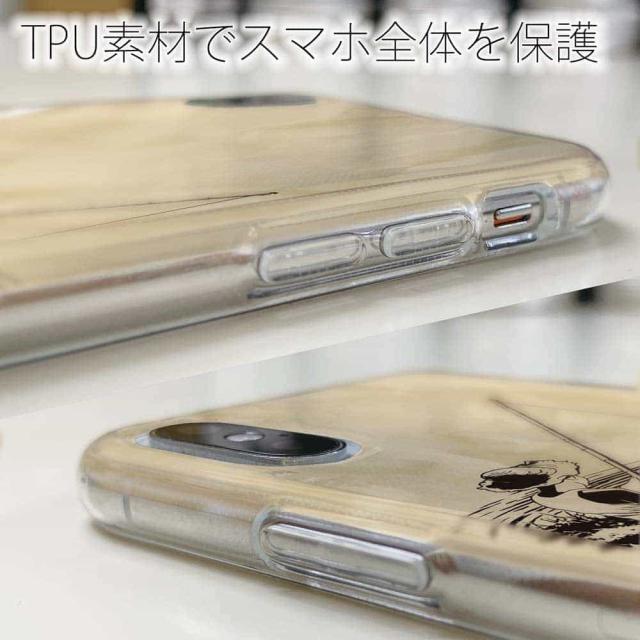 | ケースの素材について | 側面はゴムのように柔らかいTPU素材で、スマホ本体を守ります。万が一の落下でもケースが割れることがなく、耐久性の高いケースとなります。クリア(透明)のTPUケースにプリントしていますので、スマホ本体のカラーを活かしながらデザインケースが楽しめます。 |
