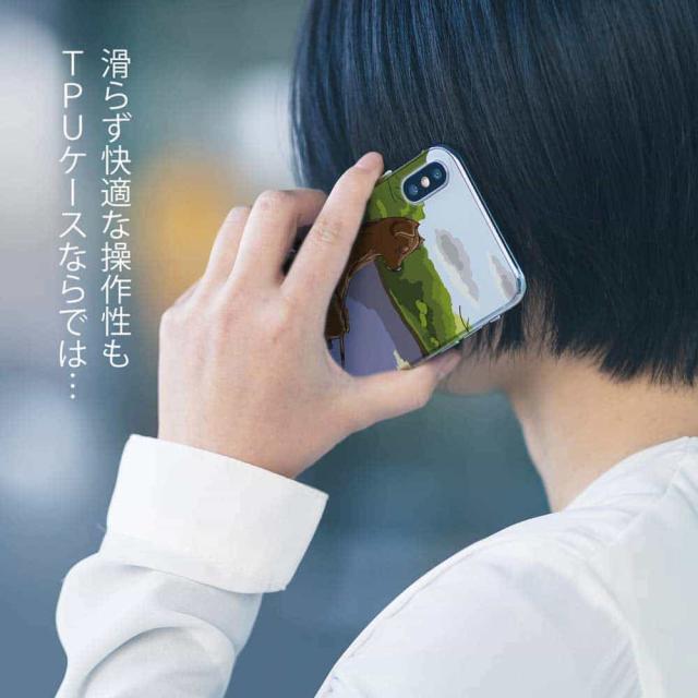 | ケースの素材について | 側面はゴムのように柔らかいTPU素材で、スマホ本体を守ります。万が一の落下でもケースが割れることがなく、耐久性の高いケースとなります。クリア(透明)のTPUケースにプリントしていますので、スマホ本体のカラーを活かしながらデザインケースが楽しめます。 |