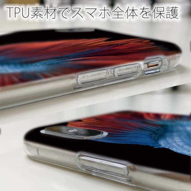| ケースの素材について | 側面はゴムのように柔らかいTPU素材で、スマホ本体を守ります。万が一の落下でもケースが割れることがなく、耐久性の高いケースとなります。クリア(透明)のTPUケースにプリントしていますので、スマホ本体のカラーを活かしながらデザインケースが楽しめます。 |