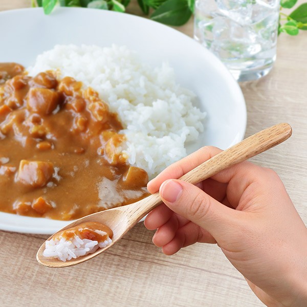 丸みを帯びた形状で持ち手に角がなく、木の肌触りの良さを感じられます。柄の部分のゆるやかなカーブがしっくり手になじみ、持ちやすくなっています。