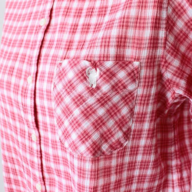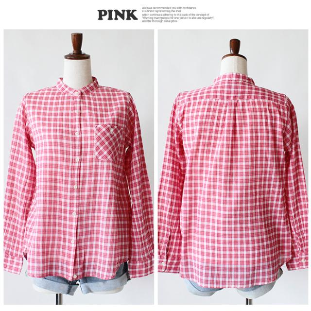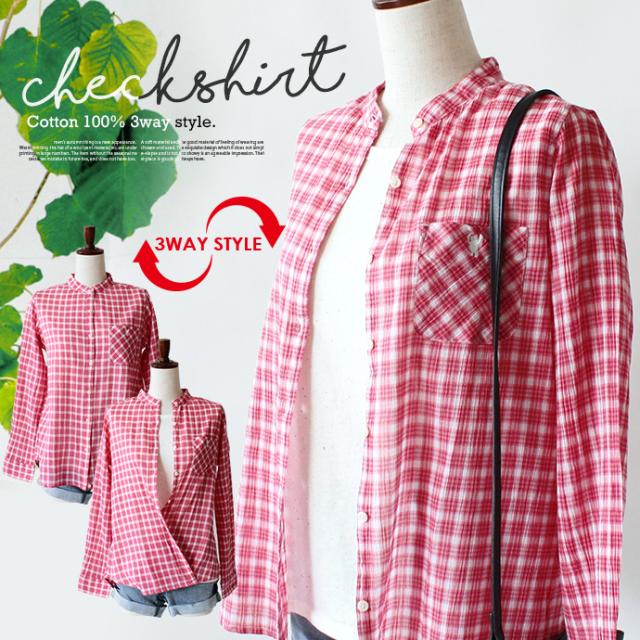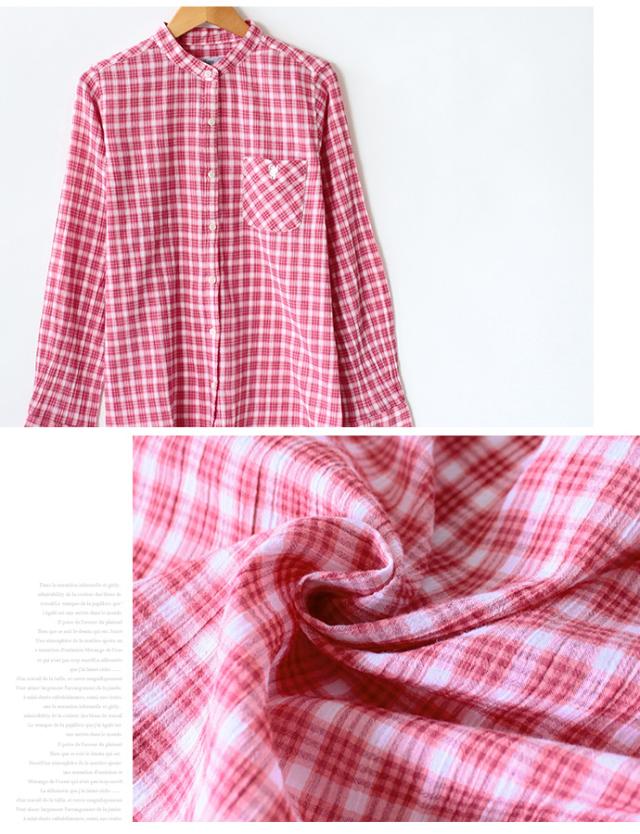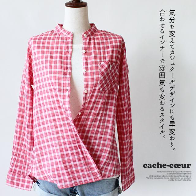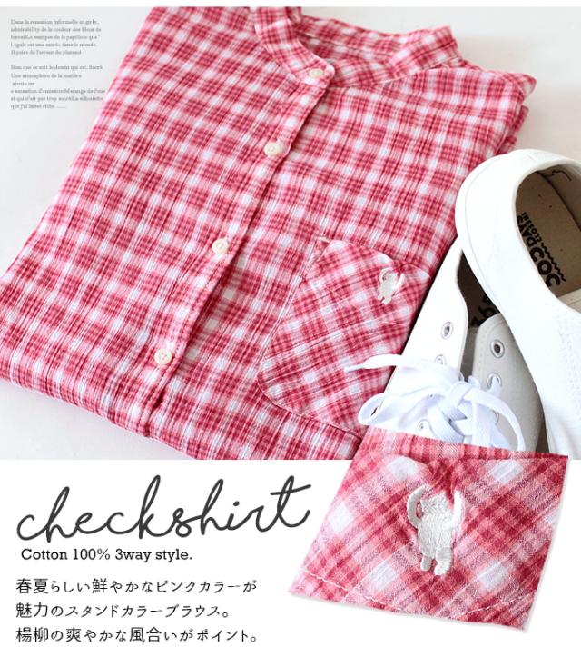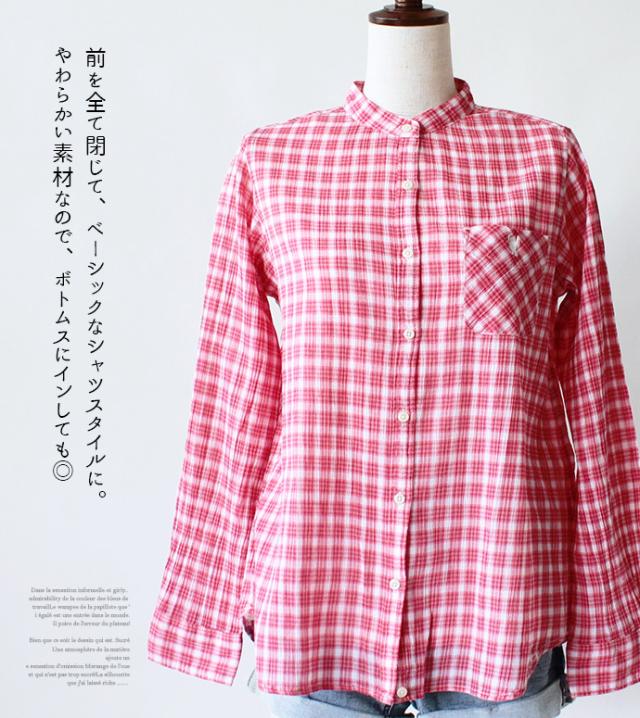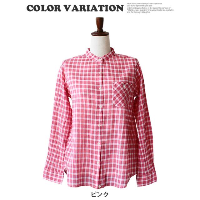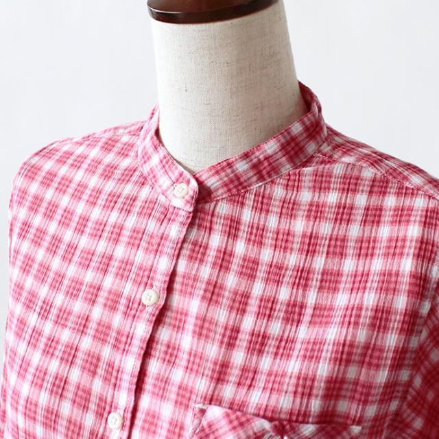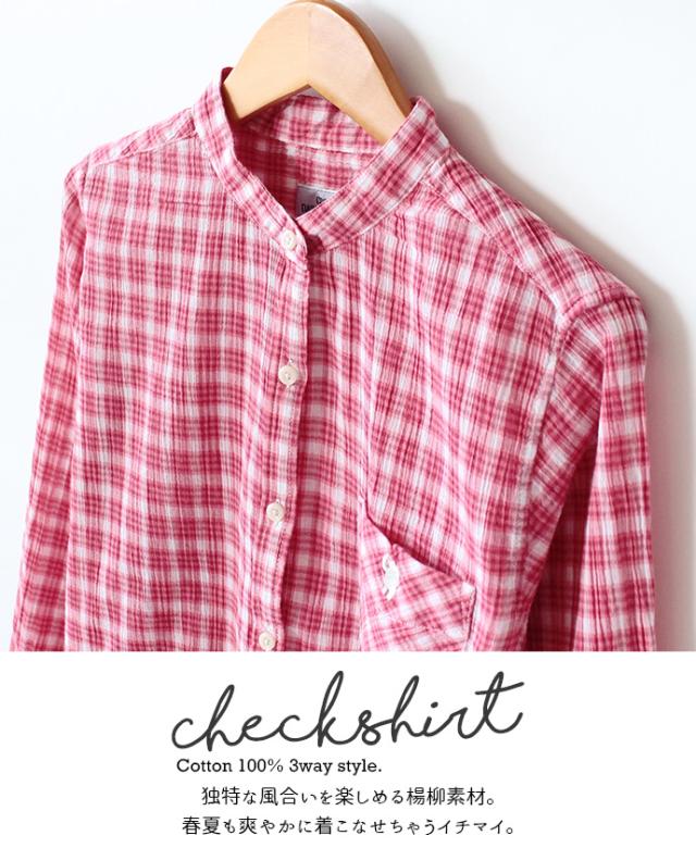 レディース シャツ ブラウス コットンシャツ スタンドカラー ヨウリュウ 楊柳 ミニチェック チェック カシュクール 【メ】