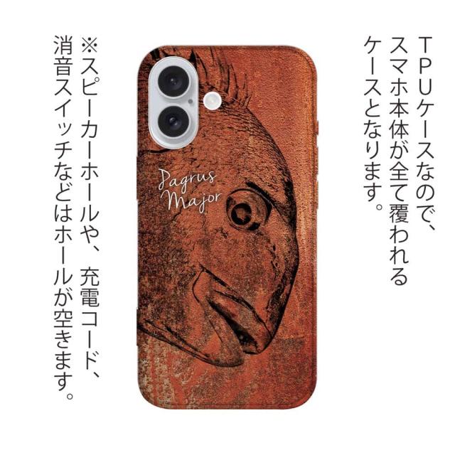 | 商品説明 | 落下や衝撃に強いTPUケース。ケースに直接プリントしてお届け。日本人が一番好きな魚マダイ。意外と知られていないが、マダイは大きく成長し、1メートルを超える個体が釣れることもある。おそらく30年以上生きている個体だと思われる。そんなマダイの鉄錆バージョン! |