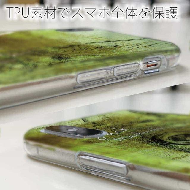 | ケースの素材について | 側面はゴムのように柔らかいTPU素材で、スマホ本体を守ります。万が一の落下でもケースが割れることがなく、耐久性の高いケースとなります。クリア(透明)のTPUケースにプリントしていますので、スマホ本体のカラーを活かしながらデザインケースが楽しめます。 |