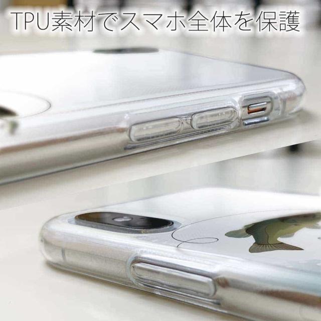 | ケースの素材について | 側面はゴムのように柔らかいTPU素材で、スマホ本体を守ります。万が一の落下でもケースが割れることがなく、耐久性の高いケースとなります。クリア(透明)のTPUケースにプリントしていますので、スマホ本体のカラーを活かしながらデザインケースが楽しめます。 |