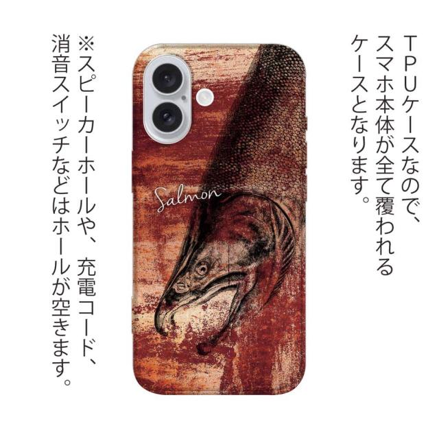 | 商品説明 | 落下や衝撃に強いTPUケース。ケースに直接プリントしてお届け。川で産まれて、海で大きく成長したサケは、産卵のために母なる川へ再び戻ってくる。何ヶ月も泳ぎ続けて、その間はエサを食べないと言われる。遡上する道のりを減る毎にオスは徐々に厳つく鼻曲がりへと変体する。そんなサーモンの鉄錆バージョン! |
