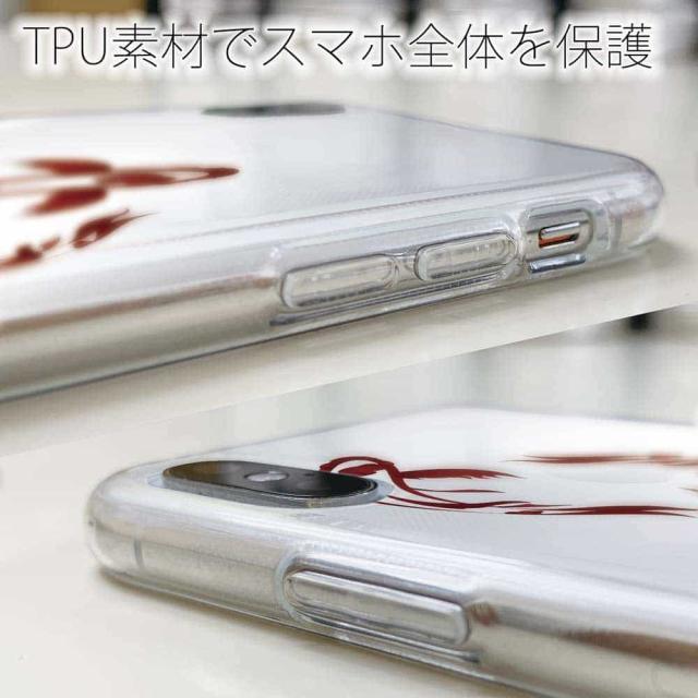 | ケースの素材について | 側面はゴムのように柔らかいTPU素材で、スマホ本体を守ります。万が一の落下でもケースが割れることがなく、耐久性の高いケースとなります。クリア(透明)のTPUケースにプリントしていますので、スマホ本体のカラーを活かしながらデザインケースが楽しめます。 |