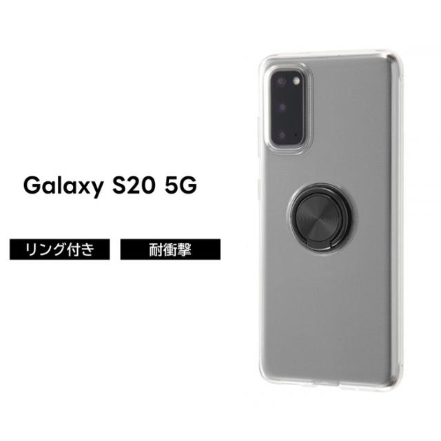 Galaxy S20 5G ケース 耐衝撃 衝撃に強い 保護 シンプル 背面クリア 透明 リング付き 軽い ソフト TPU SC-51A SCG01 docomo au ギャラクシー ブラック