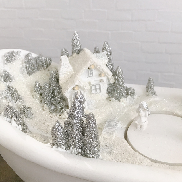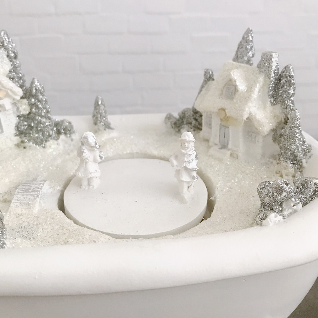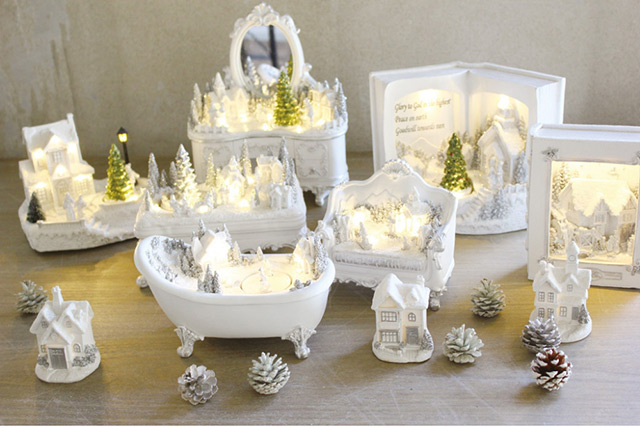 真っ白なアンティークモチーフのオブジェに幻想的な景色を飾りました。
