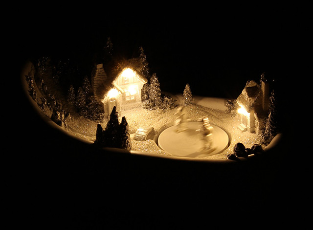 仕掛け絵本のように大きなツリーが中央で楽しい音楽とともに回りながら光ります。