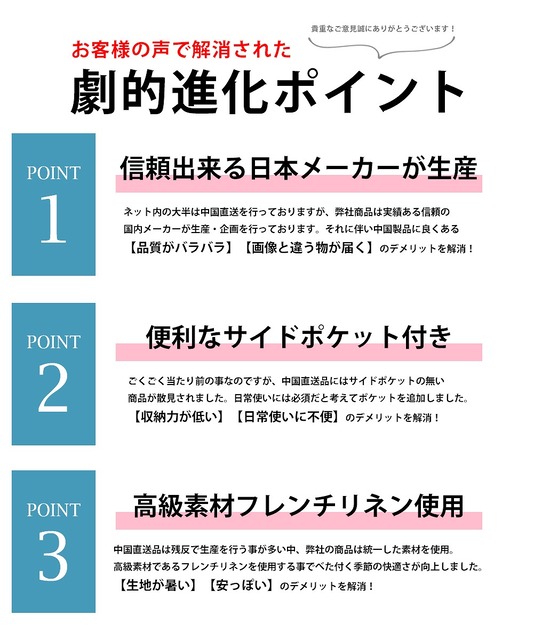 | ホワイト ブラック ベージュ ネイビー カーキ ピンク サックス グレー |