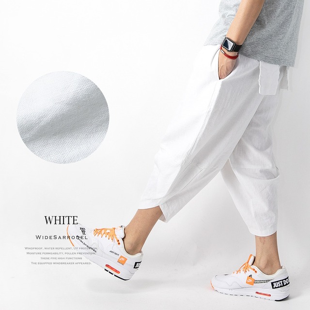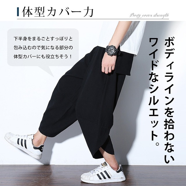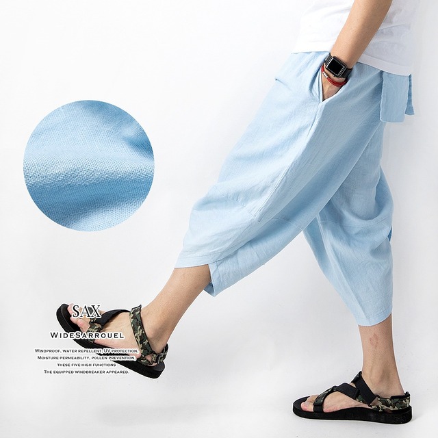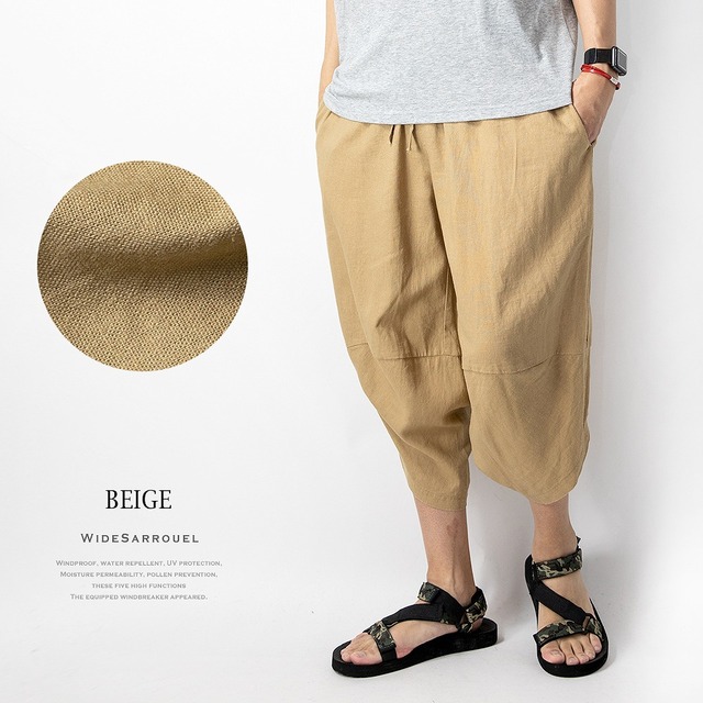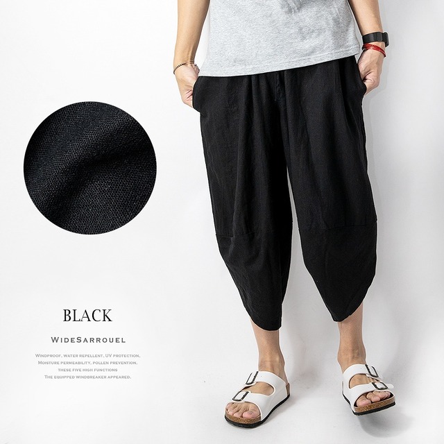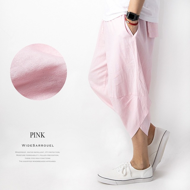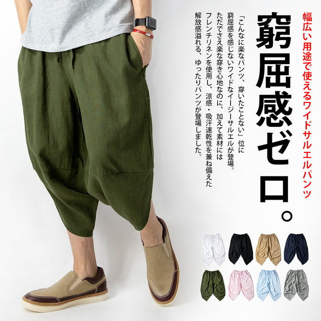 サルエルパンツ メンズ ワイド 麻 涼しい ゆったり ボトムス ズボン リネン 全10色 レッド ベージュ ブラック ギフト プレゼント シンプル 綿 アロハ パンツ