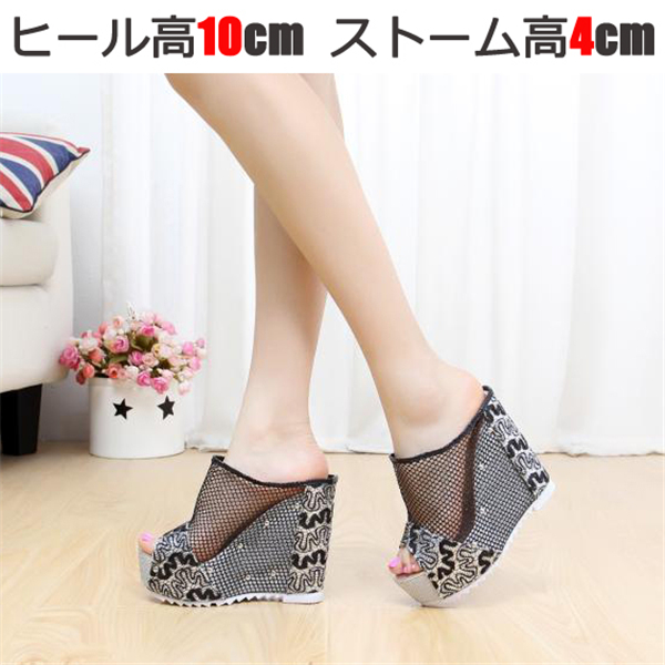 夏サンダル 10cmUP レース ミュールレディース シューズ 厚底サンダル 美脚 オフィスサンダル ハイヒール 女性サボサンダル スリッポン ミュール ウェッジソール 厚底サンダル レディース ミュール ウェッジソール ハイヒール