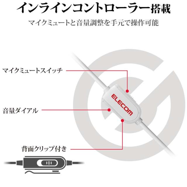 ●マイクミュートと音量調整を手元で操作できる便利なインラインコントローラーを採用しています。