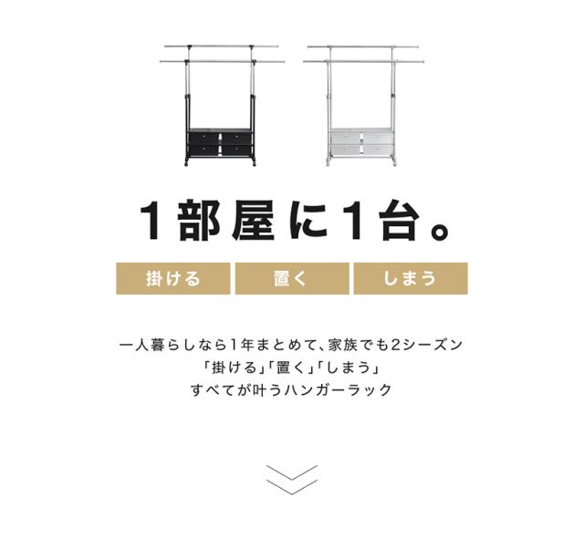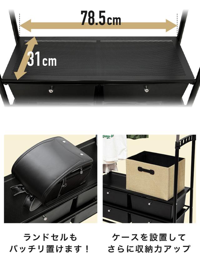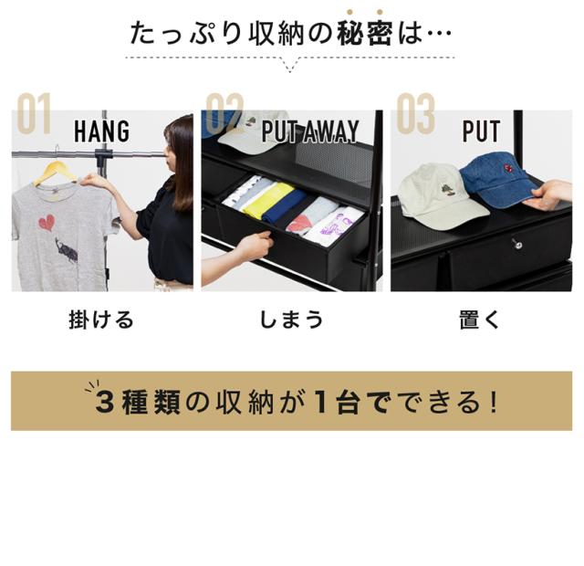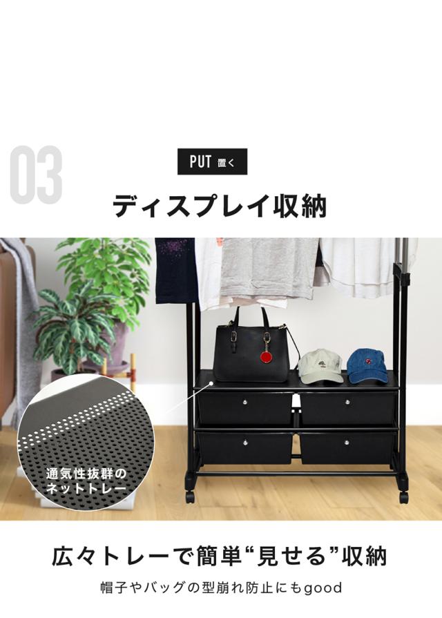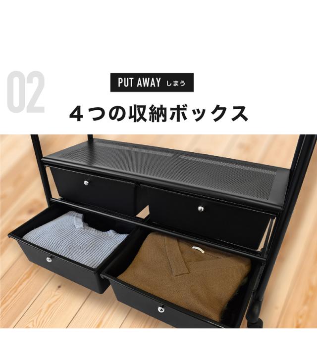 ハンガーラック 4チェスト付き 収納家具 シェルフ ラック ハンガー掛け 小物収納 衣類収納 洋服かけ 洋服掛け クローゼット パイプハンガー ウォールラック チェスト キャスター付 メッシュパネル