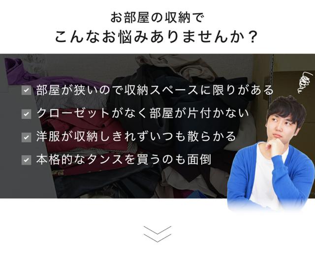 - 届いてすぐに組み立て始めて30〜40分くらいで完成しました。引き出しがイメージしていたより少し安っぽく感じましたが、服は沢山掛けられそうだし、使い勝手はよさそうです。ありがとうございました。