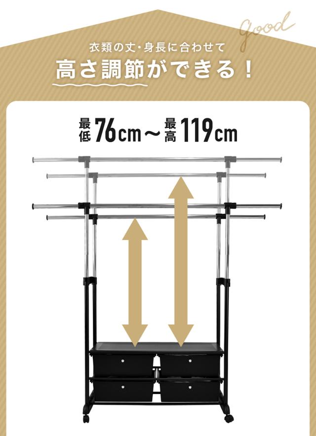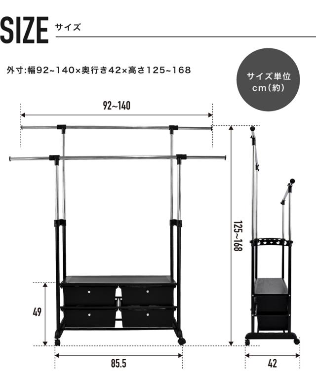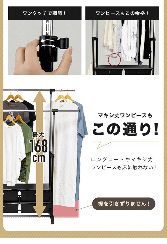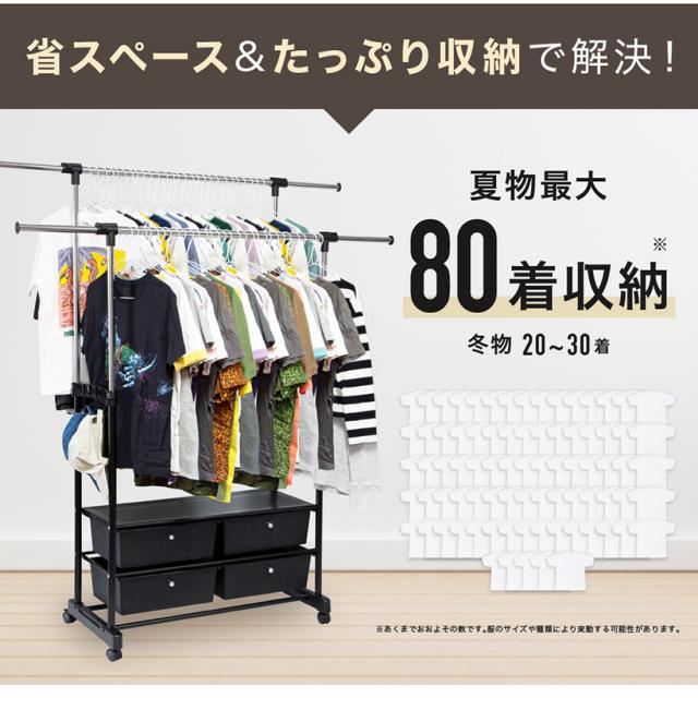 検索用:ハンガーラック チェストハンガー ツイン 収納 小物収納 衣類収納 洋服かけ 洋服掛け クローゼット パイプハンガー ウォールラック チェスト キャスター付 丈夫