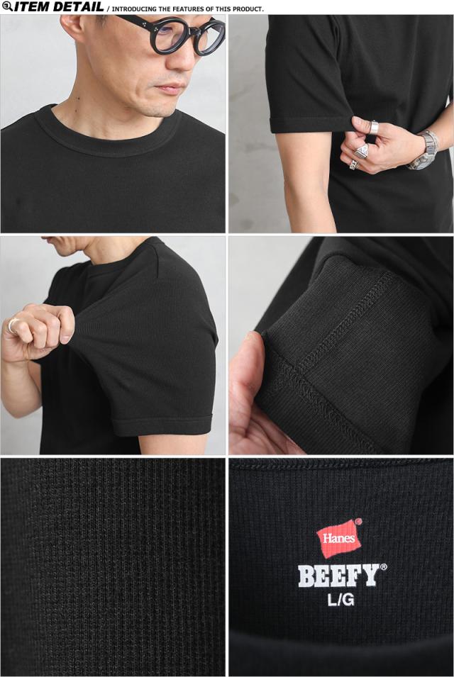 Hanes ヘインズ HM1-R103 BEEFY-T ビーフィー リブ S/S クルーネック Tシャツ【Sx】【T】|パックTシャツ メンズ トップス カットソー 半袖 クルーネック ブランド おしゃれ 無地 黒 白 大きいサイズ