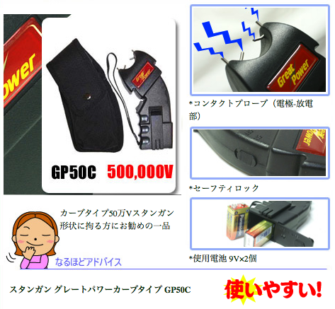 グレートパワー スタンガン カーブタイプ (GP50C / gp50c) 50万V