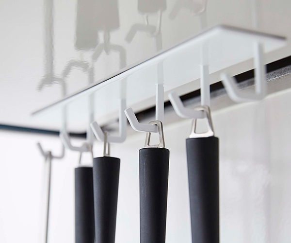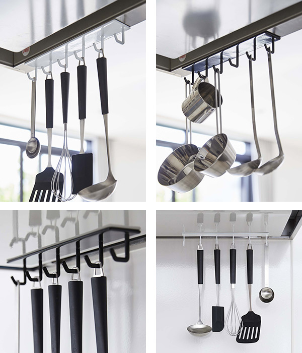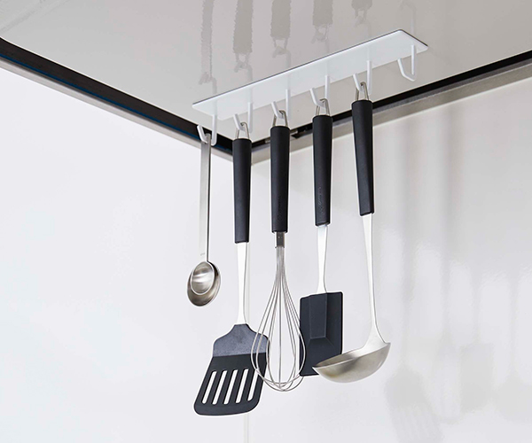 レンジフードの下に吊るして収納することで調理の際に使うお玉やフライ返しなど使いたい時にサッと手に取れるので調理がスムーズにはかどります。