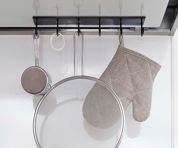 ●調理道具・鍋つかみ・計量スプーンなど、よく使うキッチンツールを掛けておくのに便利です。