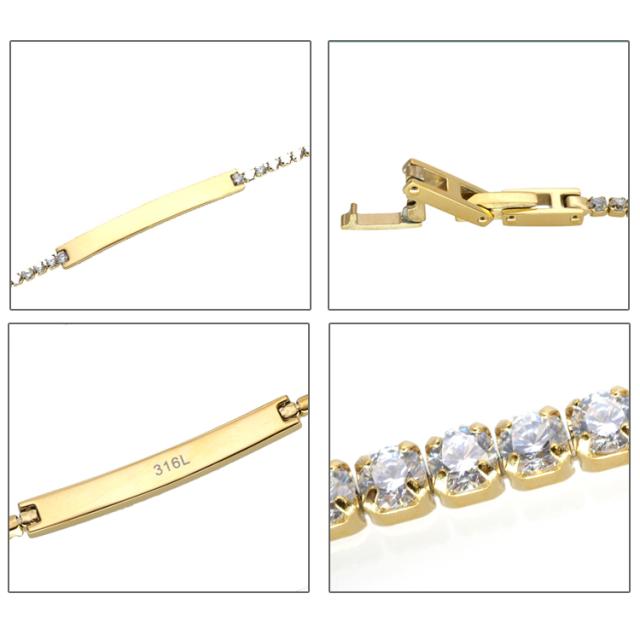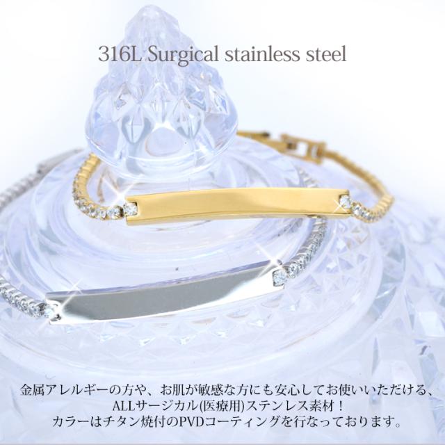 【送料無料】 金アレ対応 [EMBELLIR] ステンレスブレスレット ラインストーンブレスレット キュービックジルコニア サージカルステンレス