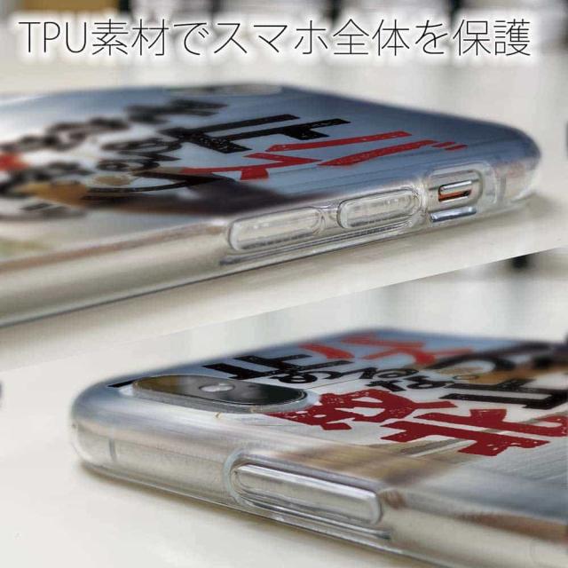 | ケースの素材について | 側面はゴムのように柔らかいTPU素材で、スマホ本体を守ります。万が一の落下でもケースが割れることがなく、耐久性の高いケースとなります。クリア(透明)のTPUケースにプリントしていますので、スマホ本体のカラーを活かしながらデザインケースが楽しめます。 |