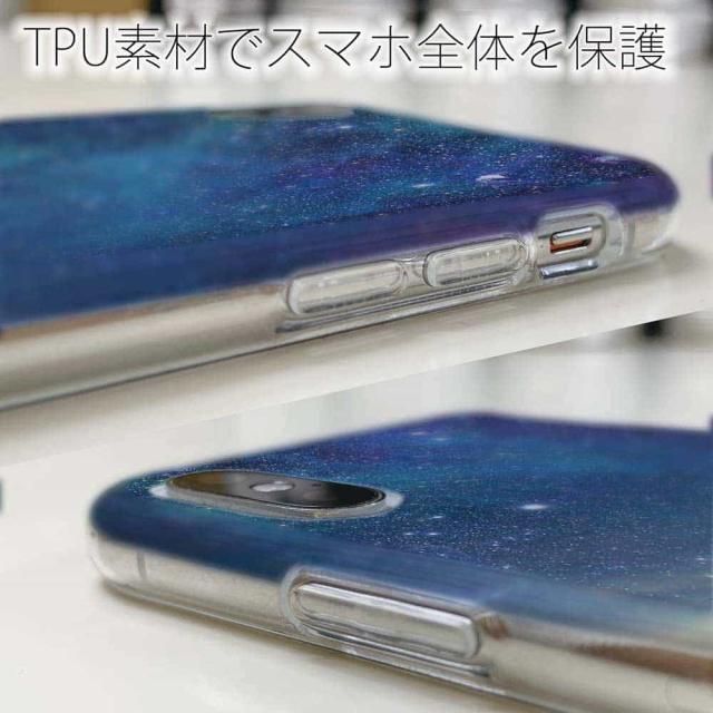 | ケースの素材について | 側面はゴムのように柔らかいTPU素材で、スマホ本体を守ります。万が一の落下でもケースが割れることがなく、耐久性の高いケースとなります。クリア(透明)のTPUケースにプリントしていますので、スマホ本体のカラーを活かしながらデザインケースが楽しめます。 |