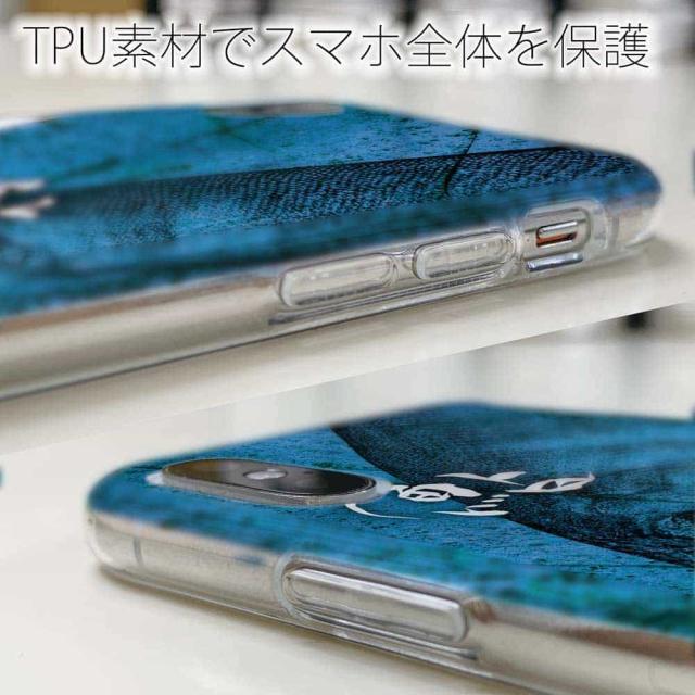 | ケースの素材について | 側面はゴムのように柔らかいTPU素材で、スマホ本体を守ります。万が一の落下でもケースが割れることがなく、耐久性の高いケースとなります。クリア(透明)のTPUケースにプリントしていますので、スマホ本体のカラーを活かしながらデザインケースが楽しめます。 |