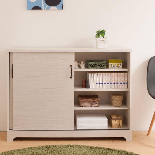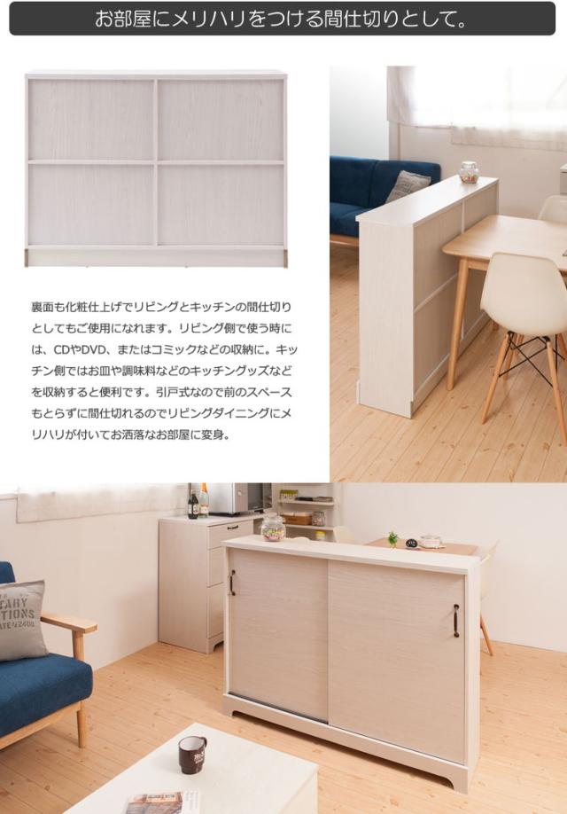 引き戸 カウンタ— 幅110 収納カウンター 大容量 引き戸式 四段 4段 ホワイト 白 棚 収納棚 おしゃれ 北欧 リビング リビングカウンター(代引不可)【送料無料】