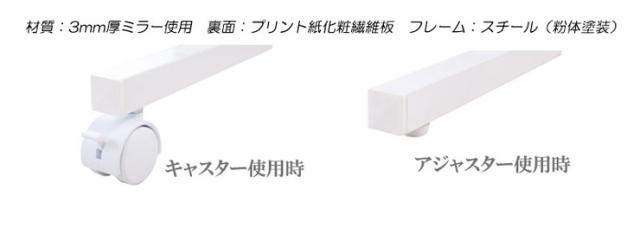■商品の仕様/表面:ミラー、裏面:プリント紙化粧繊維板、フレーム:スチール(エポキシ樹脂粉体塗装)