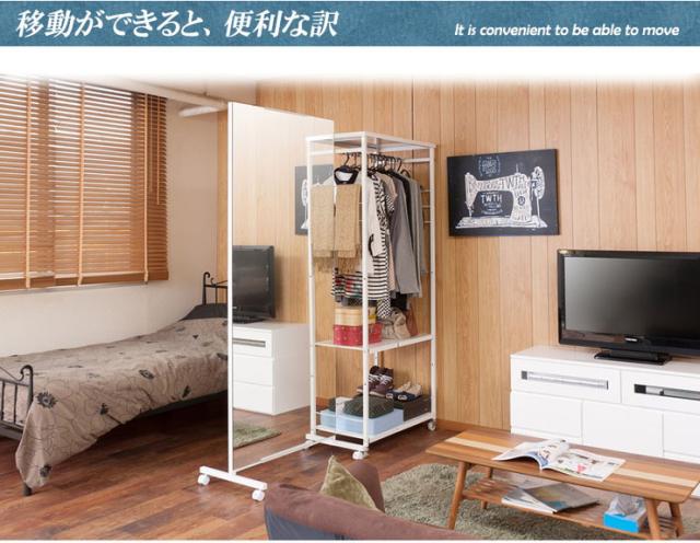 ■商品サイズ/本体:(約)幅60×奥行3(脚部43.5)×高さ(キャスター時189、アジャスター時184.5〜185.5)cm、ミラー高さ:(約)178.5cm